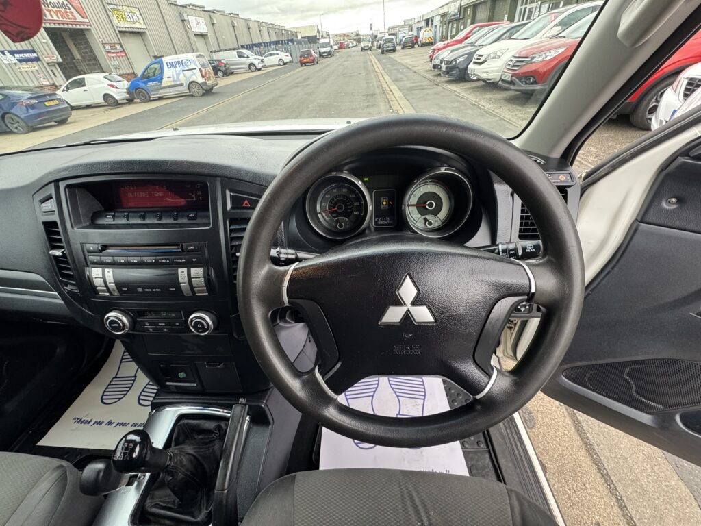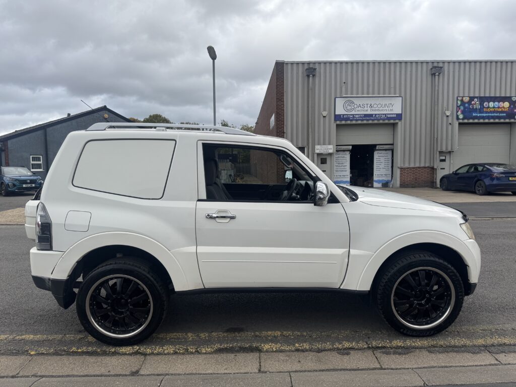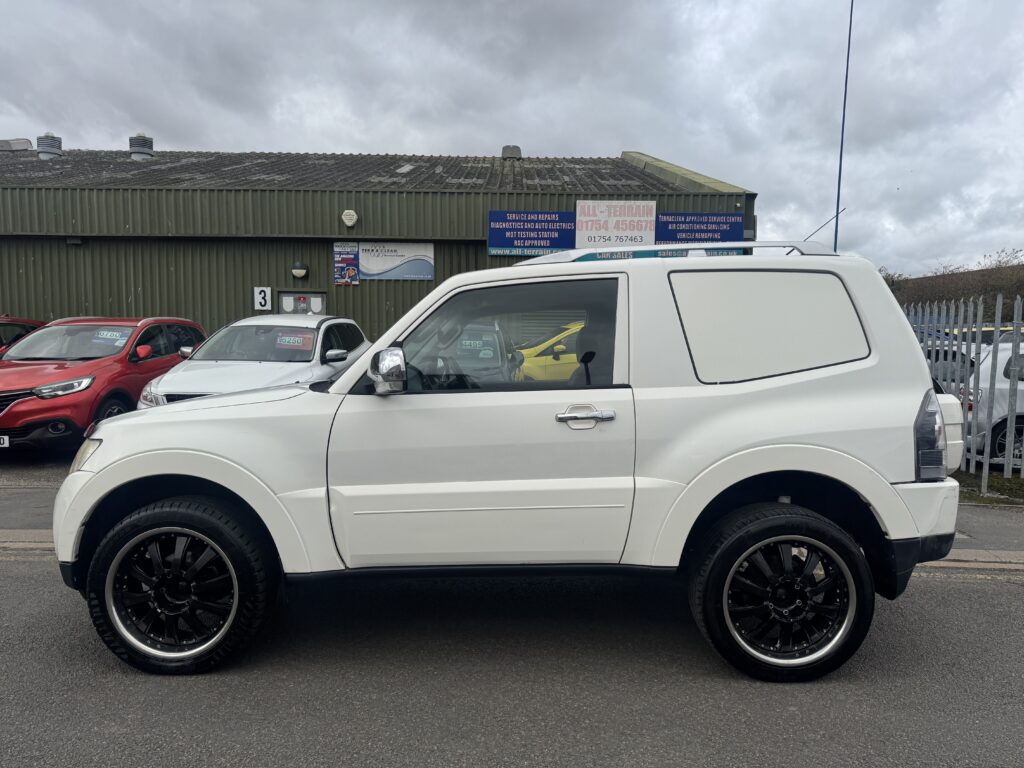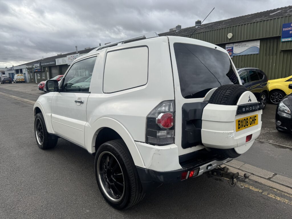 2008 Mitsubishi Shogun 3.2 DI-DC Equippe Van in White. Rare Shogun Van benefitting from commercial Road Tax (£345 Annual Tax NOT £735 which the 3.2 shoguns of this age are). Runs and Drives very well and pulls strong in all gears, the 3.2 Diesel Shogun is known for its strong off-road capability and towing ability (3000kg). This example is supplied with with an October 2026 MOT and is solid underneath, it has been undersealed to further protect the underside components. Polybushed suspension all round, uprated suspension with rear spring assisters, 20 inch alloy wheels, Metal tow bar with 7 pin electrics, Working air conditioning, Electric folding mirrors, Selectable 2WD and 4WD modes and more. 6 Months Warranty with the sale. Has a good amount of recent service history including a recent Clutch and Flywheel at over £1000. Has been used as a workhorse and is not in pristine condition however it is a good looking truck with good road presence and is useful for multiple purposes.