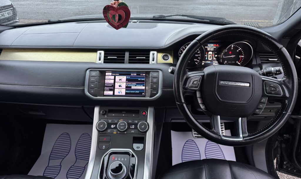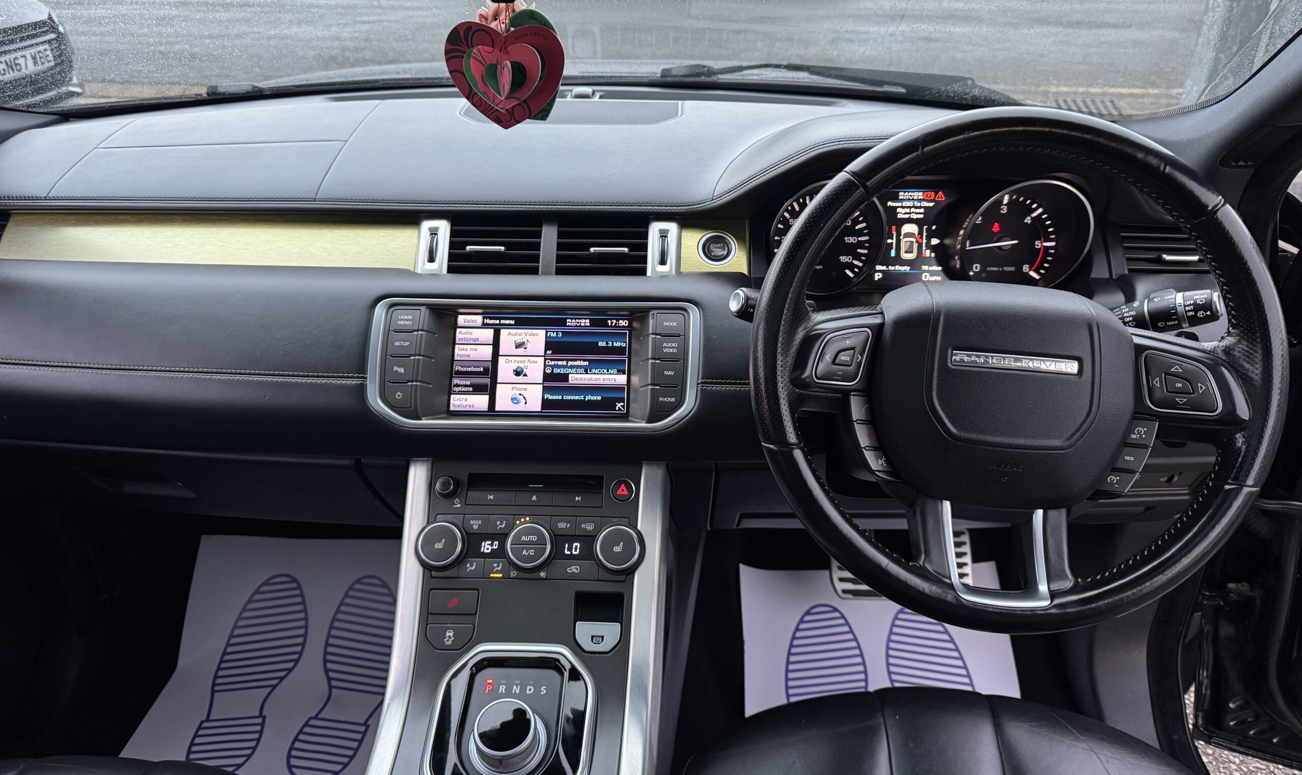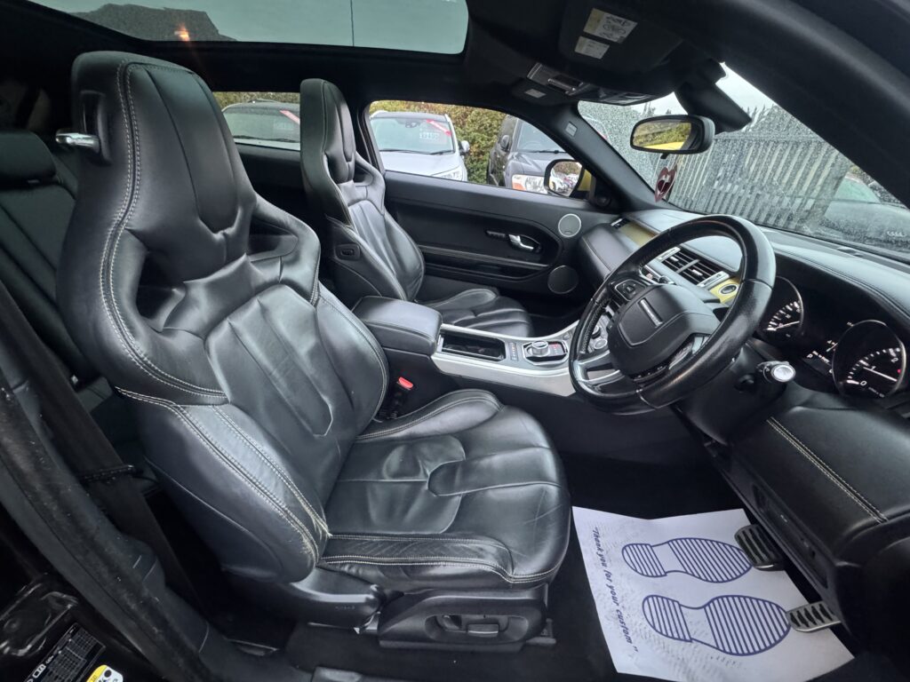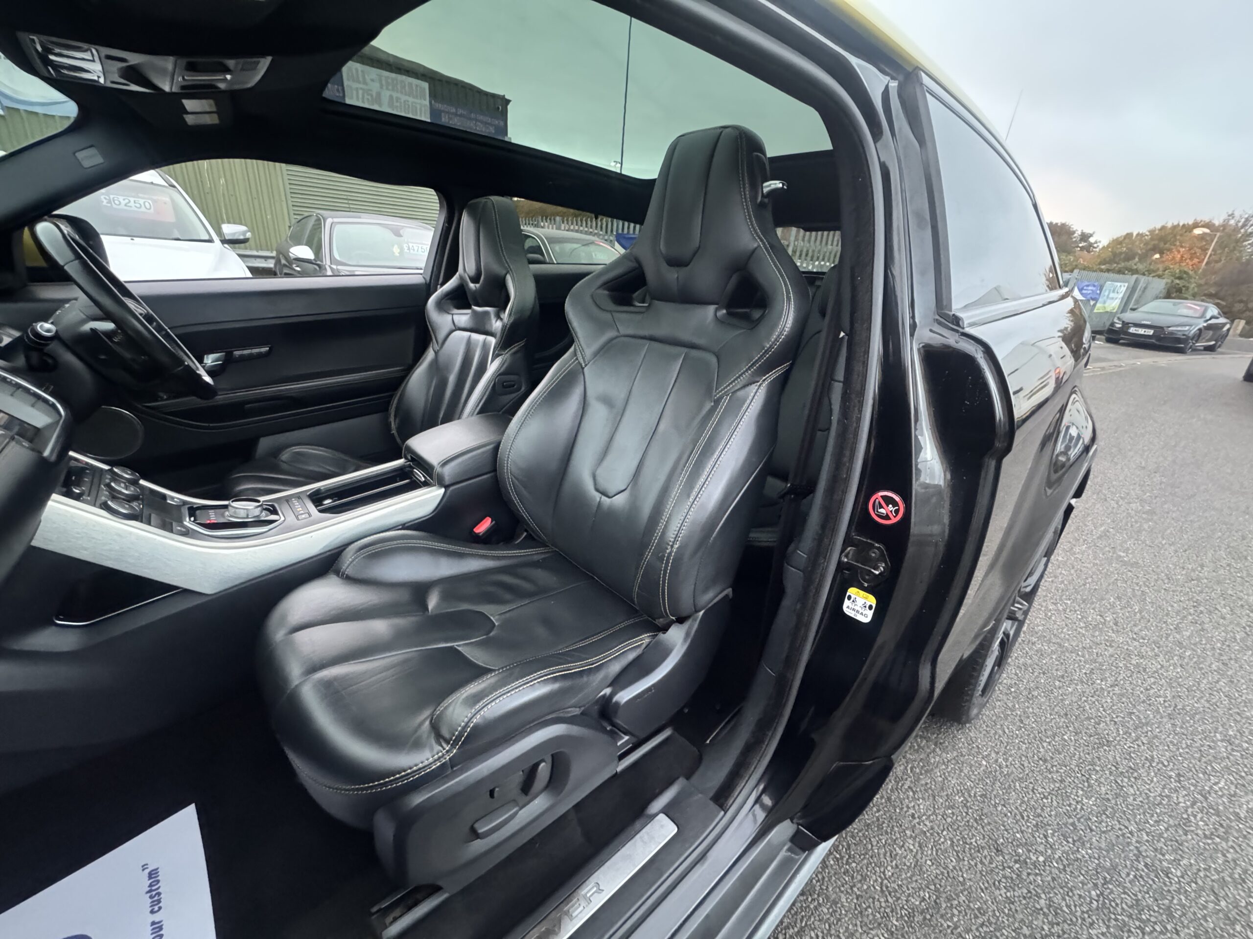 2013 (63) LAND ROVER RANGE ROVER EVOQUE 2.2 SD4 Special Edition 3dr Automatic in Santorini Black paint with Sicilian yellow contrast roof. Very rare coupe giving the already stylish Evoque a sleeker appearance. This example cost over £48,000 new which makes it one of the most expensive Evoques you could have purchased due to it being the more expensive coupe model and the special edition which ticked nearly every optional extra. This includes 20 inch alloy wheels, Black exterior pack, Meridian sound system, 8 inch touchscreen infotainment, Panoramic roof, Premium navigation, Electric leather wing-back styled seats, Reverse camera, Power folding tailgate, Terrain driving modes, Bluetooth, Cruise control, Tow bar with twin electrics, Sport mode with paddle shifters and more. August 2026 MOT, Service and 6 Months Warranty with the sale. A very rare opportunity to own a Special Edition Evoque Coupe. Very good service history, full service completed February 2025. Finance Available.