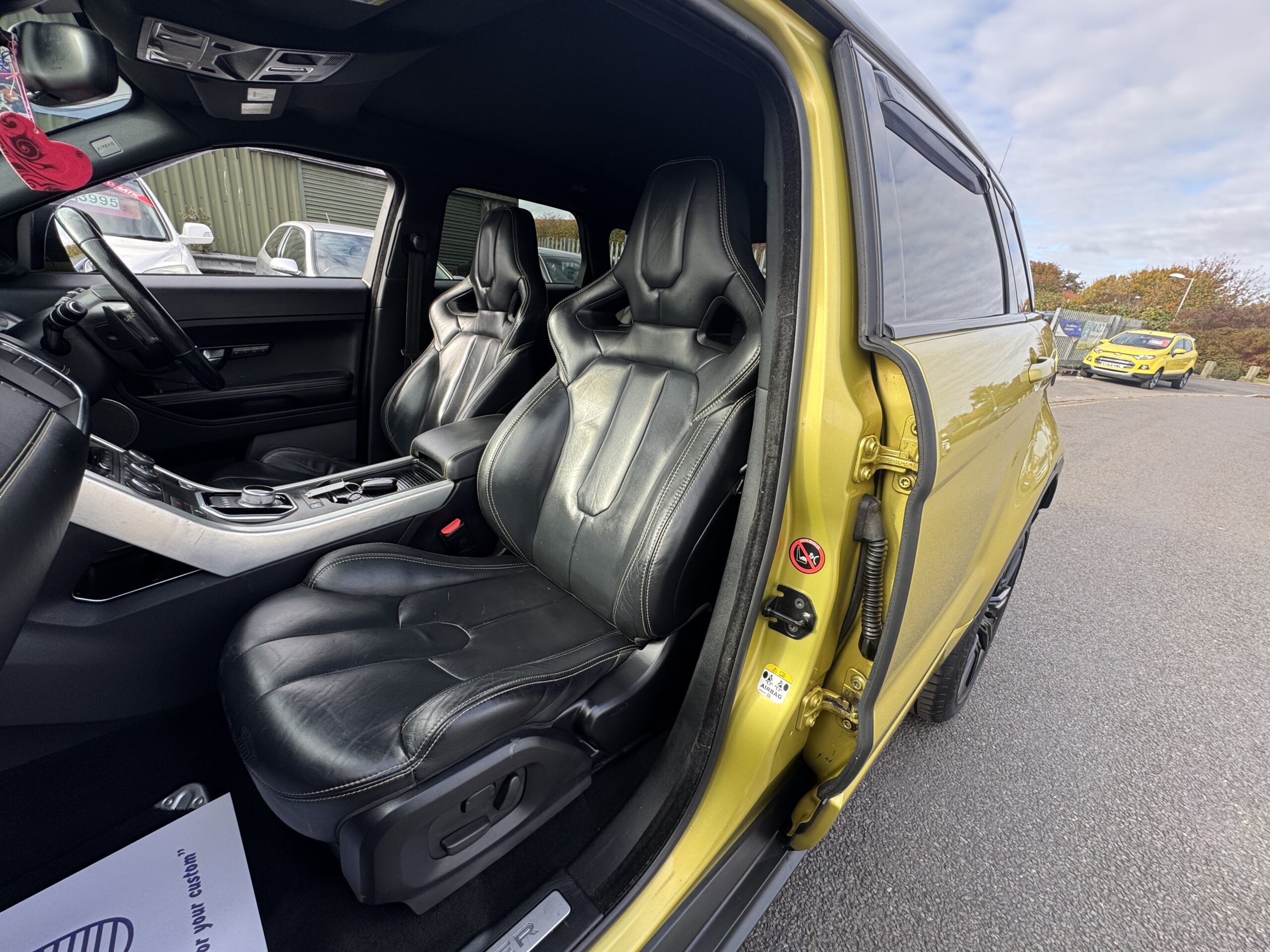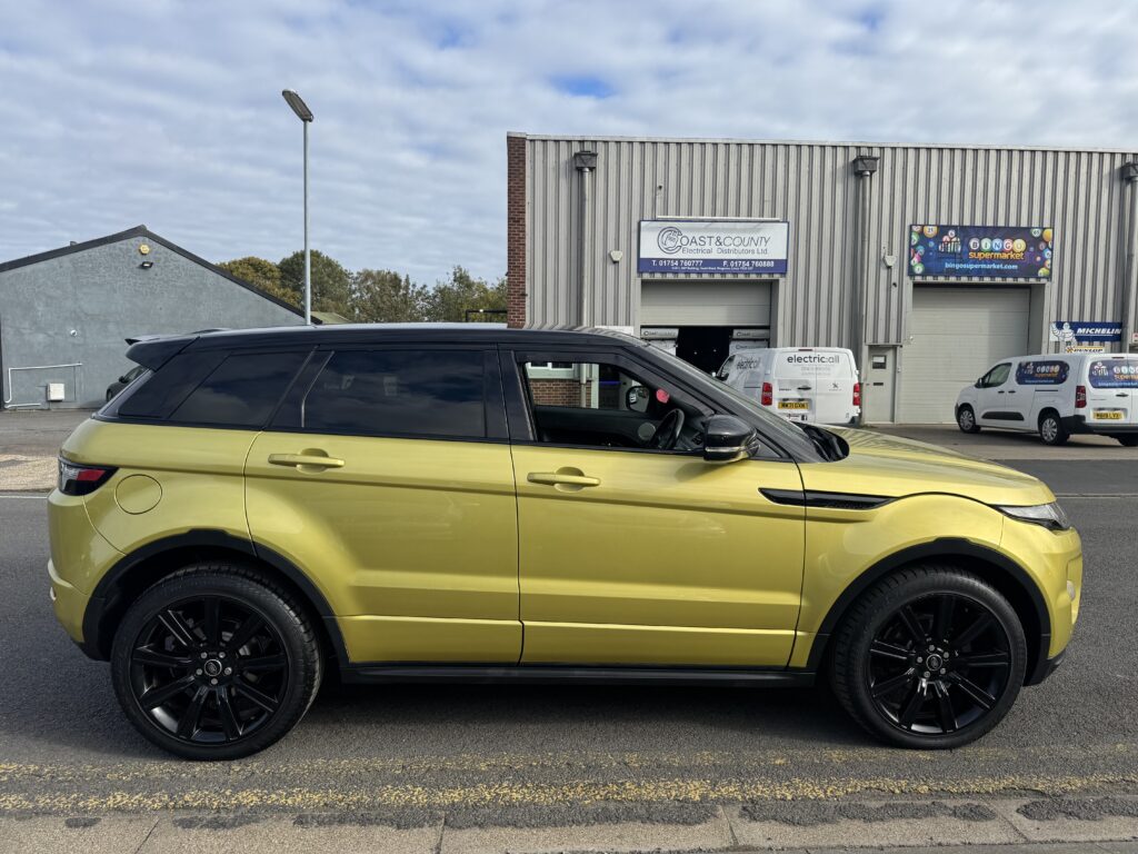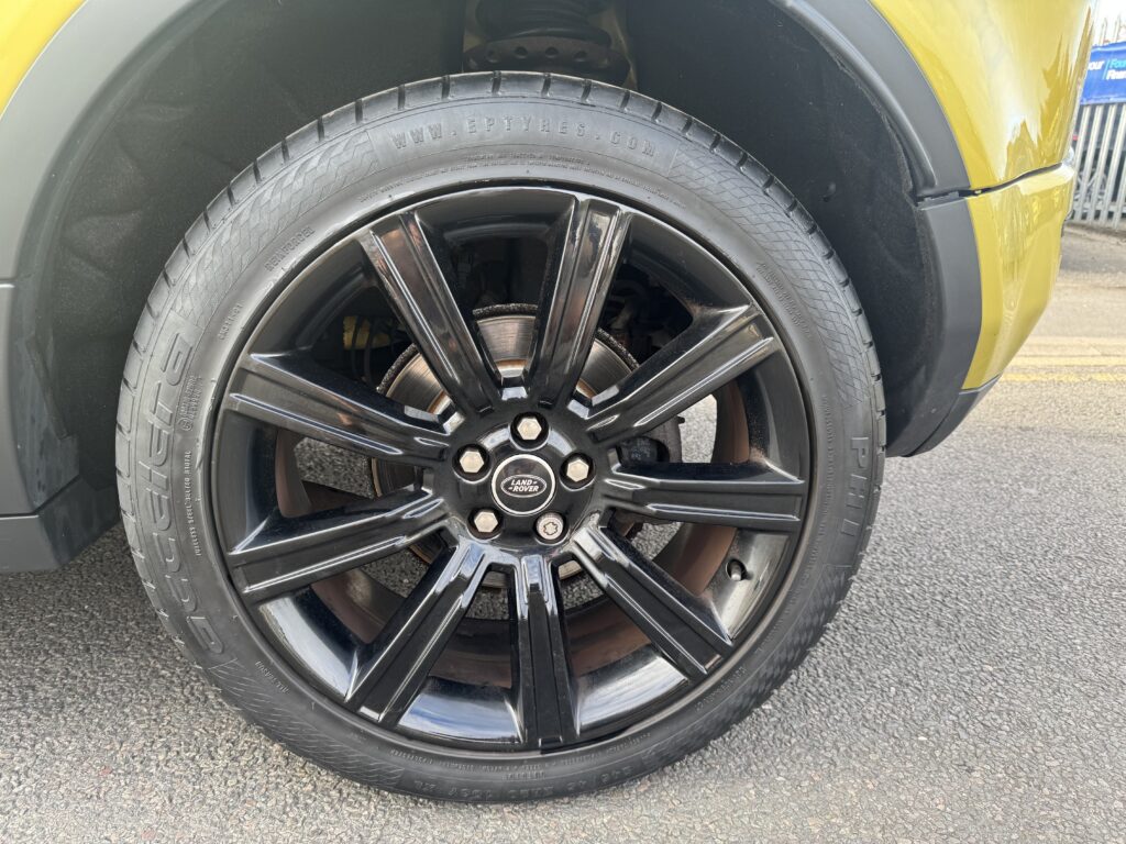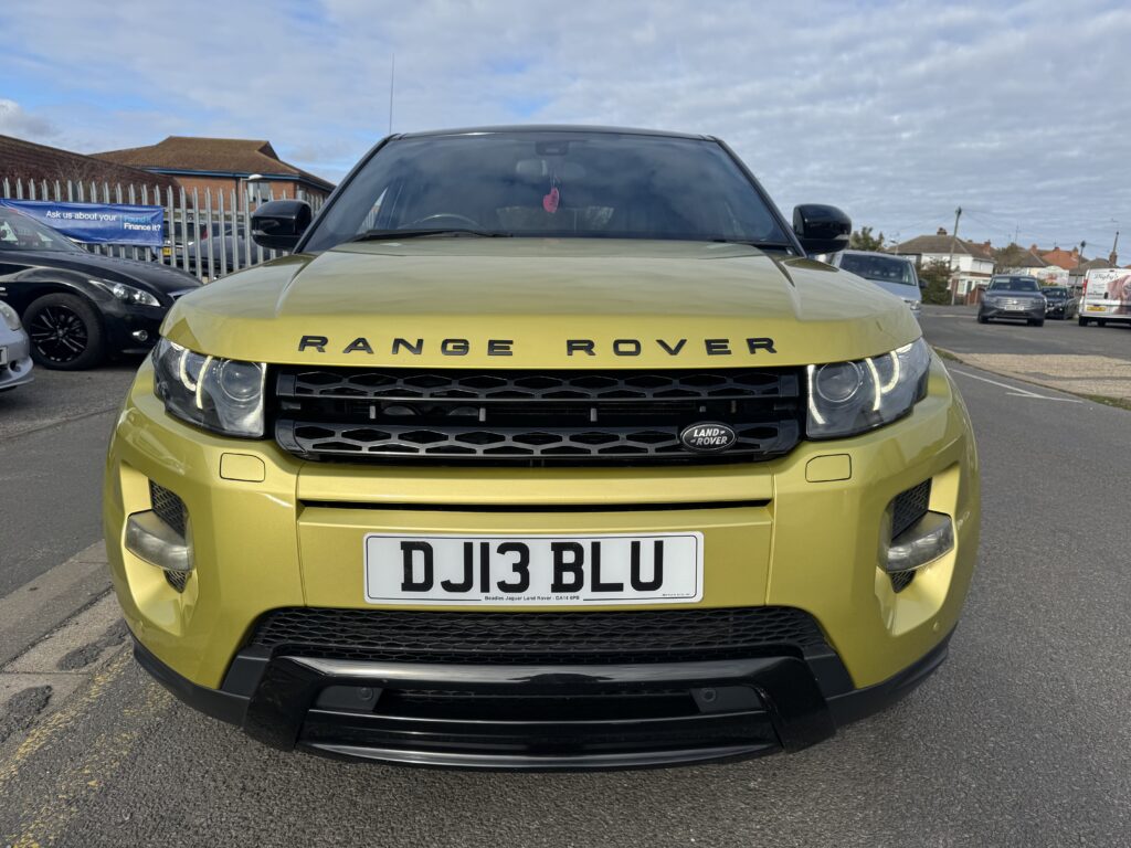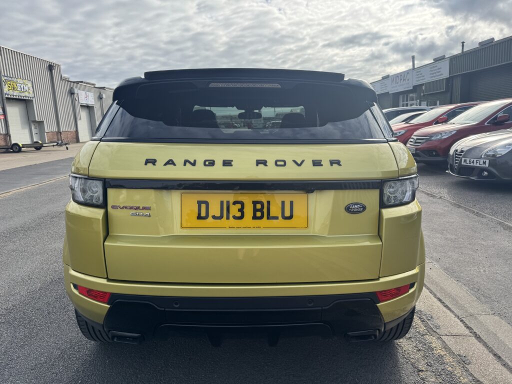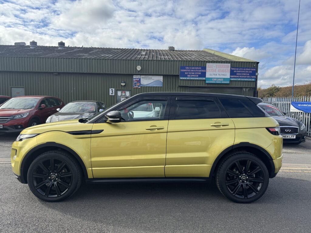 2013 Land Rover Range Rover Evoque 2.2 SPECIAL EDITION 5dr Automatic. Extremely rare Special Edition presented in Sicilian Yellow paintwork which was a £6000 option from new and is complemented by the Santorini Black Roof and mirror. 5 doors and a generous boot space making it a practical choice. At the time of writing this advert this is the only Sicilian Yellow Evoque online for sale. Runs and Drives brilliantly. The special edition includes a huge spec including 20 inch alloy wheels, Black exterior pack, Meridian sound system, 8 inch touchscreen infotainment, Panoramic roof, Premium navigation, Electric leather wing-back styled seats, Reverse camera, Power folding tailgate, Terrain driving modes, Bluetooth, Cruise control, Sport mode with paddle shifters and more. 12 Months MOT, Service and 6 Months Warranty with the sale. Over £47,000 new, a fantastic looking example of the practical 2.2 Diesel Range Rover Evoque. Finance Available.