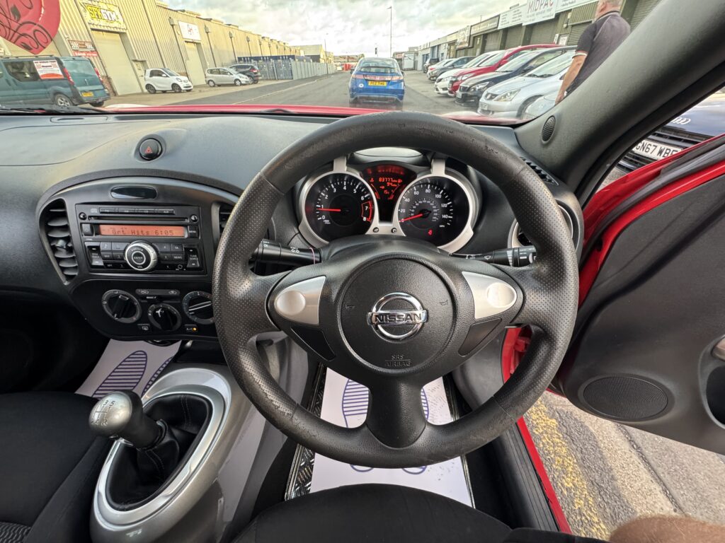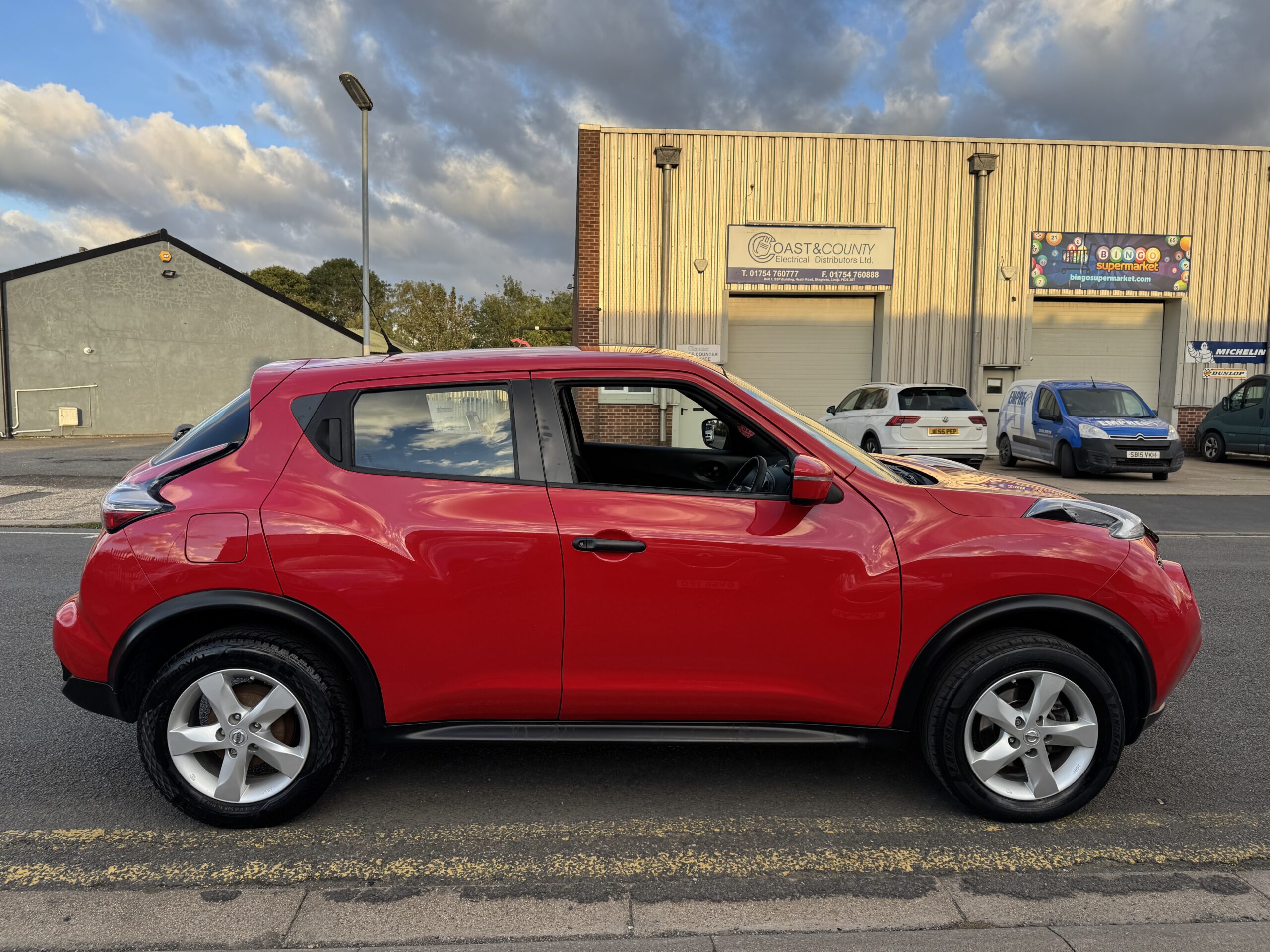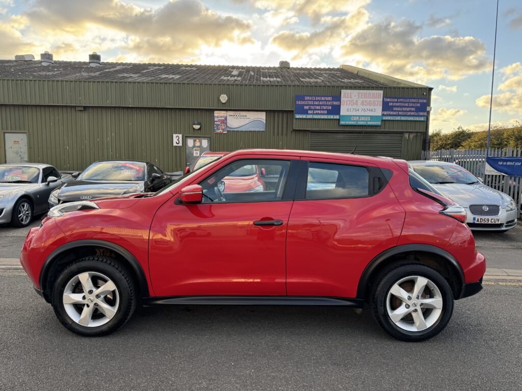 2015 (65) Nissan Juke 1.6 [94] Visia 5dr Petrol Manual in Red. Runs and Drives really well and is equipped with the ultra reliable 1.6 naturally aspirated Nissan petrol engine which is also operated by a timing chain meaning no costly belt changes. Low mileage with just 83,000 miles. Taken in part exchange from a customer who has owned it over 5 years, only reason for moving on was to upgrade to the Nismo version of the Juke, reported it to have been a fantastic car and always passed its MOT. Working Air Conditioning, Aftermarket reverse camera and tow bar with electrics. 12 Months MOT, Service and 6 Months Warranty with the sale. A nice low mileage example. Finance Available.